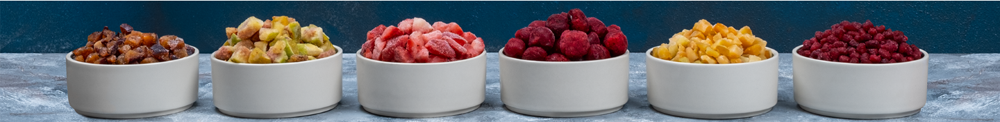 We offer organic frozen fruits in many different forms such as whole, halve, chopped, diced as an ingredient to the food industries;